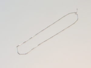プラチナ900(PT900)の刻印のあるネックレスでプラチナのストレートパーツを丸カンでつないでいるデザインです。