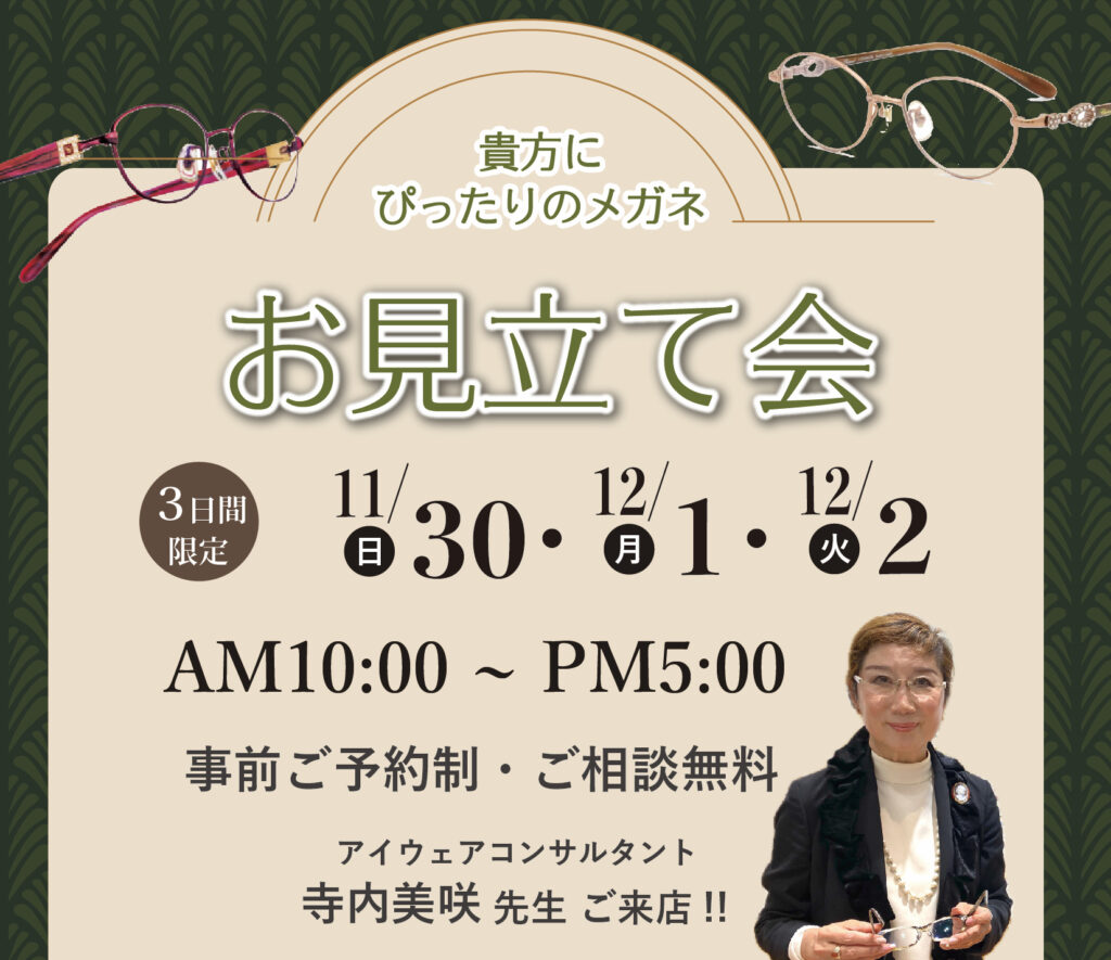 11月29日〜12/3日の3日間、メガネ選びのエキスパート・寺内美咲先生をお招きし、